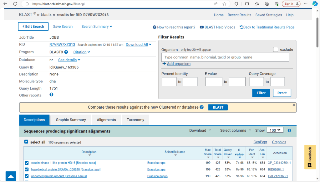 4. Hasil dari proses Blast tersebut kurang lebih sebagai berikut ini
