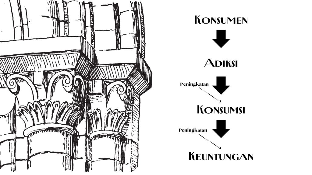 Tapi tidak untuk perusahaan, adiksi mengarahkan konsumen untuk terus menambah tingkat konsumsi mereka. Tidak peduli apapun caranya, akhirnya jika tidak dipenuhi menghasilkan penderitaan berupa perasaan tidak nyaman, gelisah, dll.