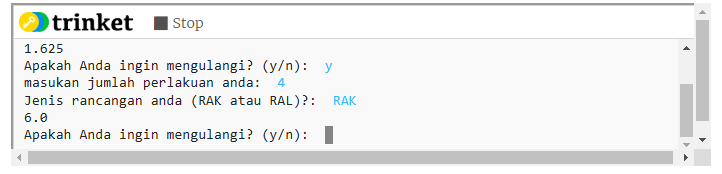 Rata-rata analisis ANOVA membutuhkan sekitar 2 ulangan. Nyarinya gampang, tinggal pake program yang udah ku tulis tahun lalu. Masukin aja jumplah perlakuan sama jenis rancangannya, cek di sini.