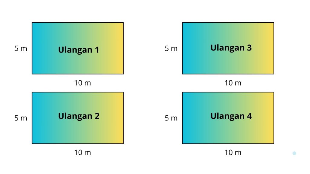 Sampe sini ada pertanyaan “kenapa harus ada ulangan, abisin waktu jir“. Ulangan berfungsi supaya kita punya perbandingan dan semua perlakuan memiliki kesempatan yang sama untuk dapetin perlakuan yang udh disusun (cek bagian pengacakan biar mudah).
