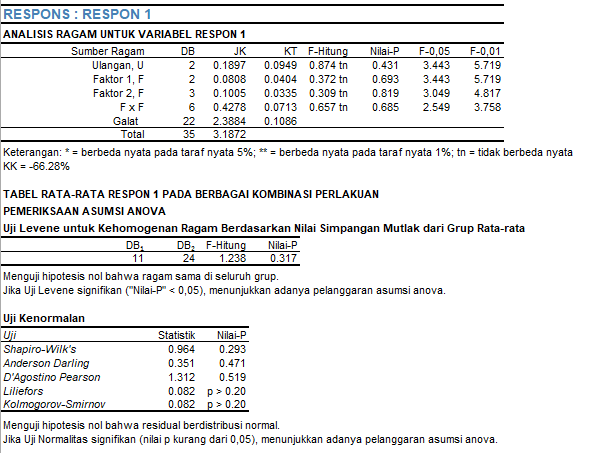 Disclaimer: penulis menggunakan smartstatXL lisensi free sehingga hanya sampai ANOVA, uji normalitas, dan grafik residual. Tidak dengan uji lanjutnya.