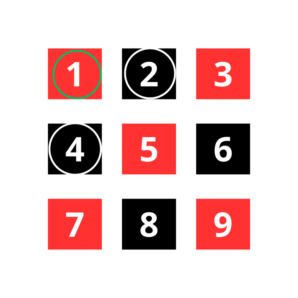 Misalnya jika bertaruh bahwa bola akan jatuh pada angka satu dan ternyata malah jatuh pada angka lain di dekatnya. Empat dan dua adalah contoh dari NME.