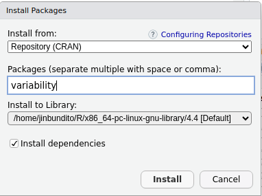 Analisis kovarian, korelasi genetik, parameter genetik, dan path analysis membutuhkan library variabillity. Berikut cara melakukan instalasinya.