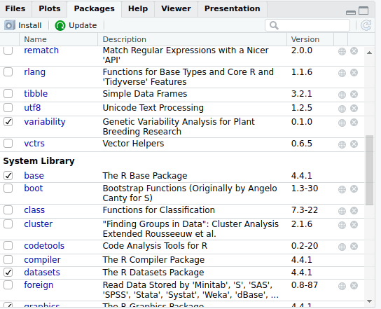 3. Tunggu beberapa saat hingga library terinstall. Setelah itu pada bagian “packages” ceklis “variability”. Step ini tak kalah penting karena sumber semua analisis pada artikel ini ada pada library variability.