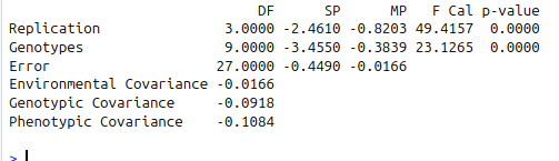 3. Berikut merupakan output dari hasil analisis kovarian, anda bisa mendapatkan tabel ancova dan kovarian genetik, fenotipik, serta lingkungan.