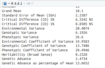 gen.var(olah_data[3:4],olah_data$Genotypes,olah_data$Replication)