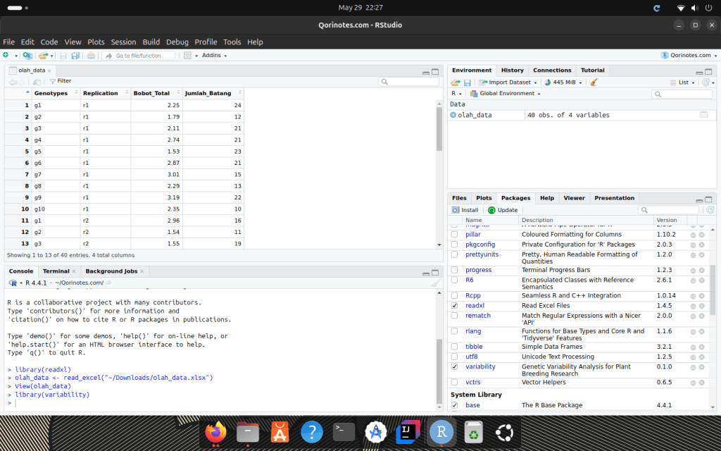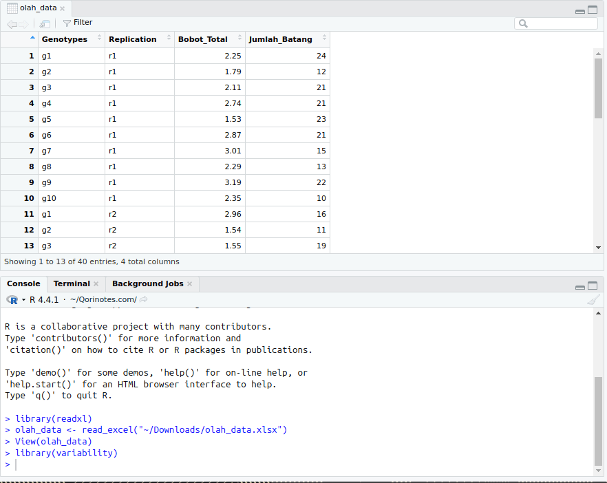 Tidak dapat dipungkiri bahwa sumber tutorial untuk analisis statistik pemuliaan tanaman menggunakan RStudio masih terbatas.