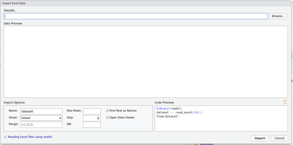 Biasanya import data Rstudio menggunakan file .csv, agar lebih mudah mari kita gunakan .xlsx saja.