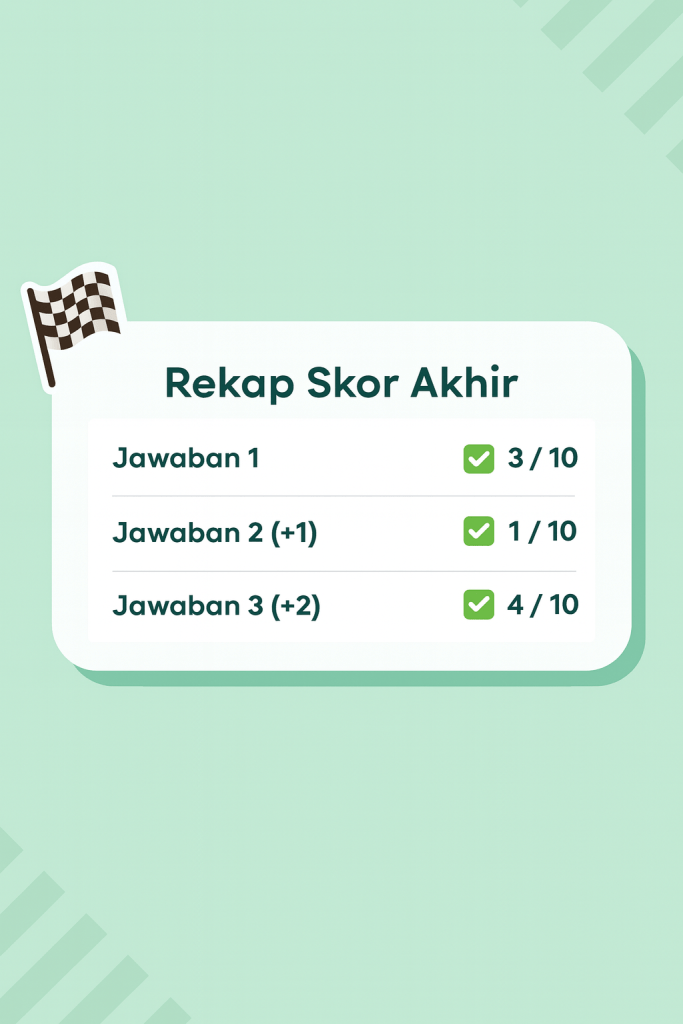 Hasilnya dapat di lihat pada Gambar 1 dengan catatan jawaban 2 dan 3 menggunakan teknik pertamabahan index. Jika nomor 1 jawabannya adalah A, maka percobaan selanjutnya aku jawab B( +1).