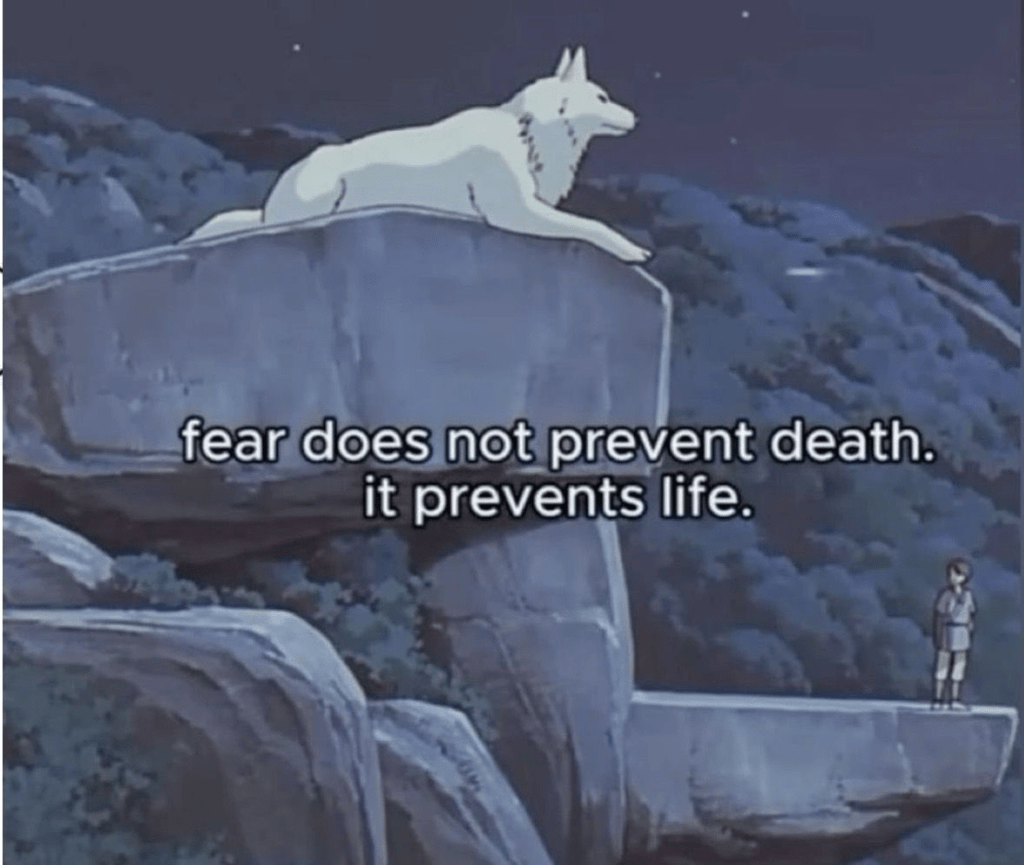 Setelah aku membaca kalimat di atas, ada satu hal yang kusadari, yaitu ketakutan tidak mencegah kematian, itu hanya mencegah kehidupan.